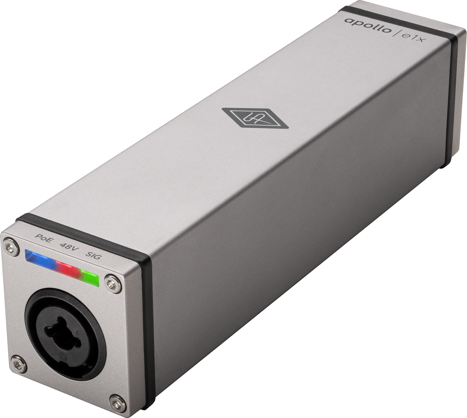The UA Apollo e1x is a high-quality, single-channel Unison preamp designed for seamless integration into Dante networked audio environments. It features Power-over-Ethernet (PoE) support, so it can receive power directly through the network cable, eliminating the need for a separate power source. This makes the Apollo e1x an efficient and convenient choice for audio professionals, providing easy connectivity and flexibility in both studio and live sound setups