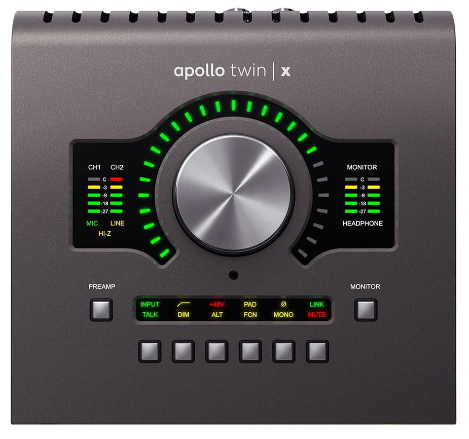 Unison technology is also found on Apollo Twin X's front-panel Hi-Z instrument input, providing dead-on impedance and gain matching for guitar and bass amp models from Fender, Marshall, Ampeg, and more.