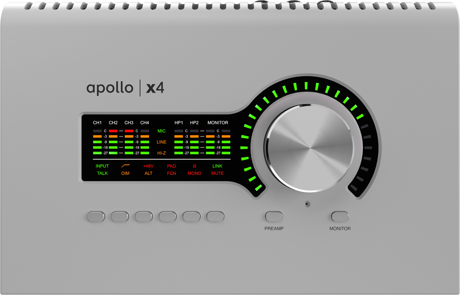 With four Unison™ preamps and dual front panel Hi‑Z instrument inputs, Apollo x4 lets you track in realtime through preamp and channel strip plug-ins from Neve, Manley, API, and dozens more, giving you the same rich analog textures used on the greatest recordings of our time.