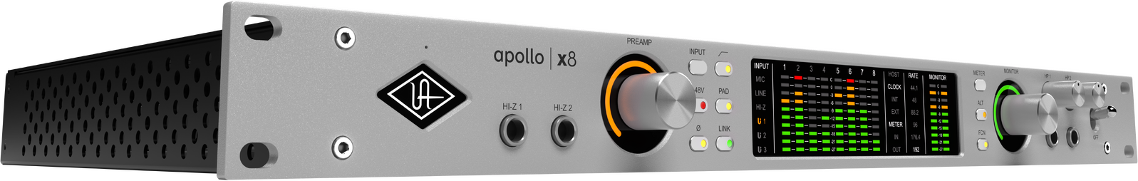 UA's next generation of Apollo x8 interfaces is here, for studio producers who need highest-resolution audio conversion, four Unison™ mic preamps, and HEXA Core DSP processing for recording and mixing with world-class UAD plug-ins from Auto-Tune, Neve, Manley, Avalon, SSL, and hundreds more.