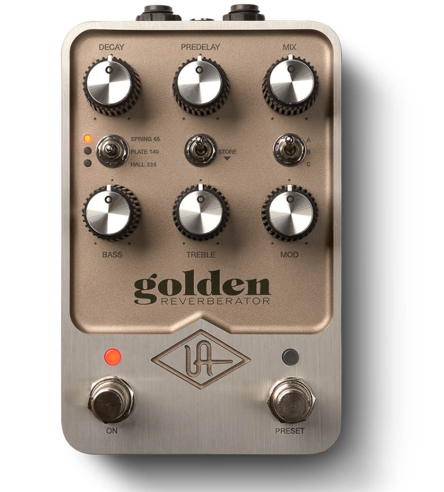 Engineered and developed by the acclaimed team at Universal Audio, the UAFX Golden Reverberator pedal boasts powerful dual-processor architecture for the most sonically authentic Spring, Plate, and Vintage Digital reverbs ever available in a stompbox.