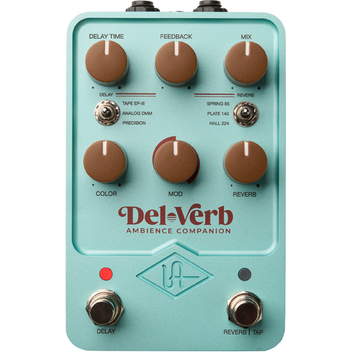 Whether it's the warm repeats of a '70s Maestro EP-III tape echo, the thick color of an Electro-Harmonix Memory Man, or UA's modern-sounding Precision Delay, Del-Verb's suitcase is packed with the definitive effects found in UA's mothership — Starlight Echo Station — for easy access to killer sounds in a flash.*