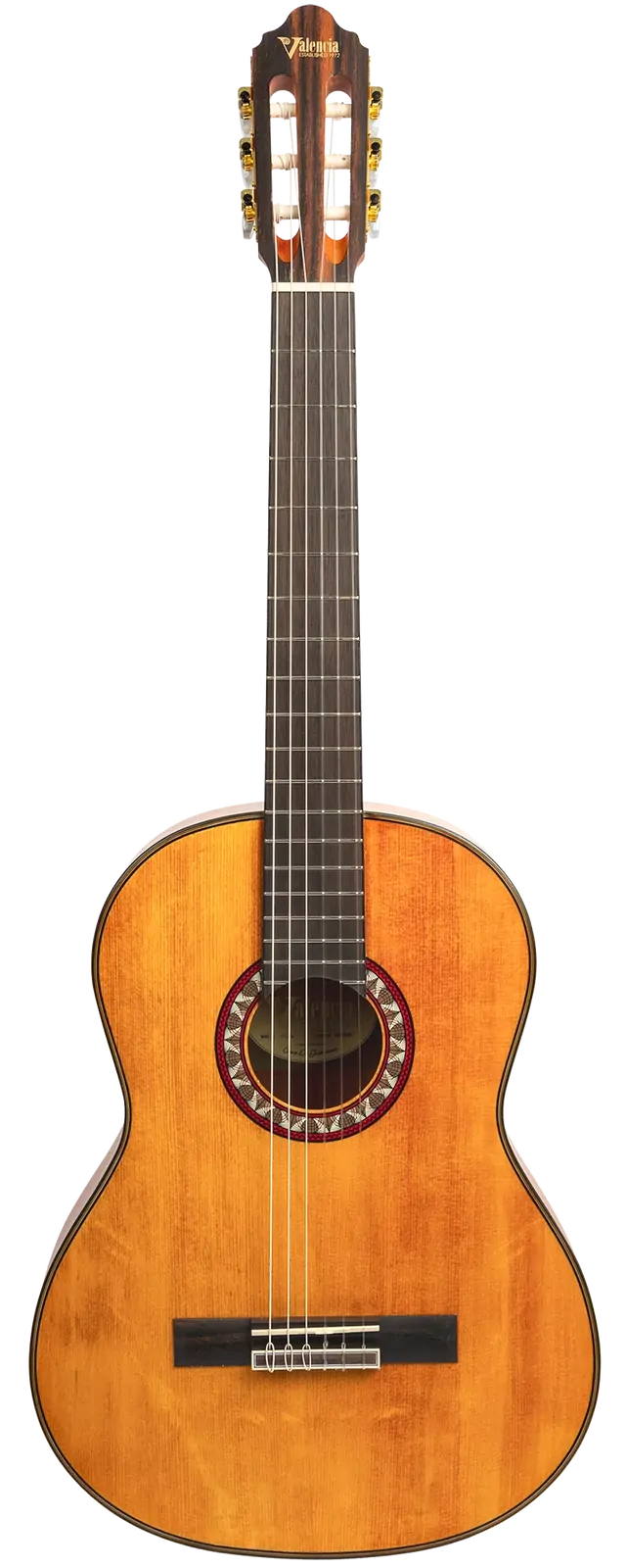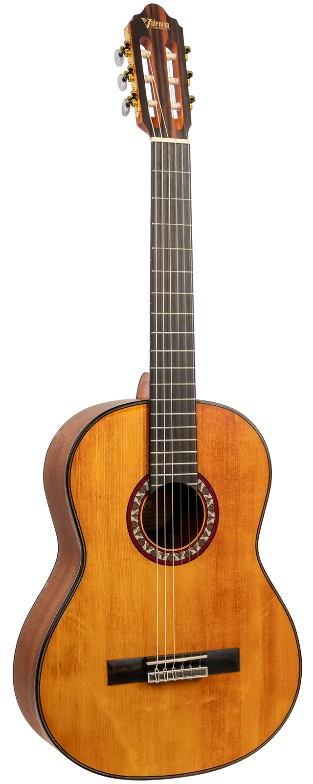 Traditional gold machine heads (with pearloid-button tuners), and a beautiful ABS center back strip round out the traditional look of the Valencia Series 400 range. The transparent, satin finish and tasteful appointments highlight the Series 400 understated good looks.