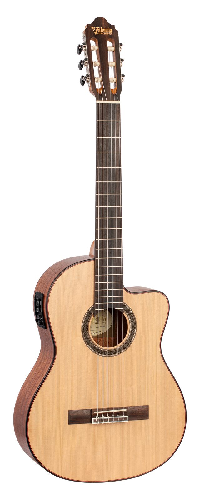 The VC704CE cutaway electric acoustic model comes with a built-in Valencia 3-Band EQ preamp system for great plugged-in tone that picks up every nuance of your performance. It even features a built-in tuner so you’ll always sound your best.