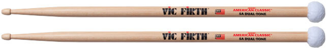 5A with a durable synthetic felt ball on the butt end. Great for cymbal swells and quick changes to warm drum tones.