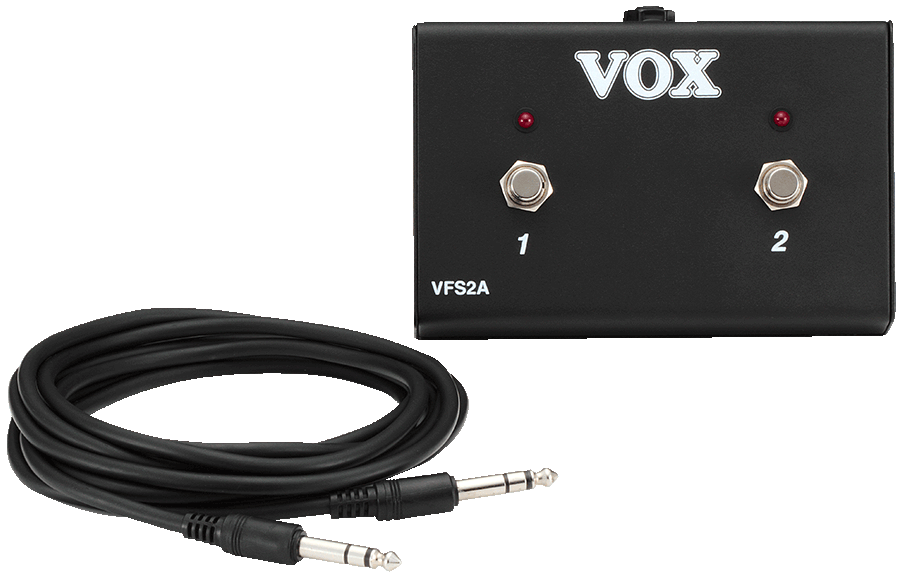 Dual footswitch with LED for Valve Reactor Series AC30VR & AC15VR, AC Custom Series AC15C1, AC30C2(X). Hi-quality durable all-metal construction with twin LED, separate stereo jack lead supplied for connect to amp. Compatible with AC15C1(X), AC15C2, AC30C2(X), AC15VR, AC30VR, and all Night Train G2 models.