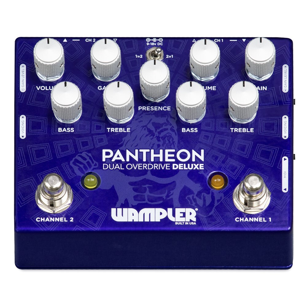 - Dual Independent drive channels using Brian Wampler’s classic Pantheon circuits; Channel 1 Classic Blues Breaker voicing, Channel 2 Modern Boutique voicing.