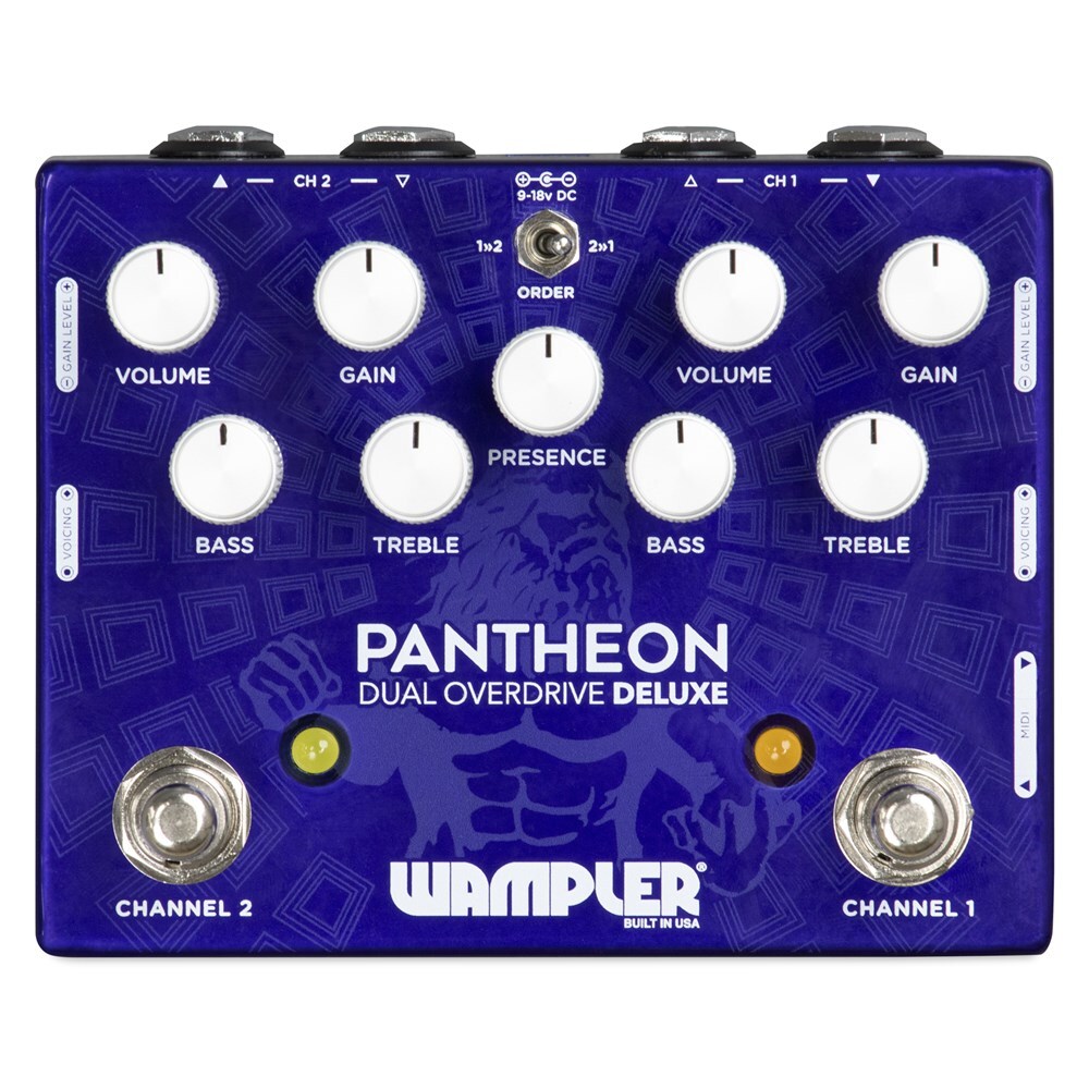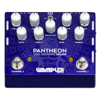 The now legendary Wampler Pantheon provided a unique interpretation of the classic “Blues Breaker” style stomp box, by capturing all the tonal nuance of the original, but with added flexibility and style. In doing so, it found its way onto thousands of pedalboards across the world. Enter the new Pantheon Deluxe – a dual overdrive pedal that takes this evolution several steps further by offering a flexible design with two completely independent Pantheon circuits, one voiced as a classic blues breaker and one with a more modern boutique sound. This palace of tone delivers a staggering 200 combinations of gain settings, featuring dual Inputs and Outputs, and for the first time ever, Wampler have added MIDI channel switching to one of their gain pedals.