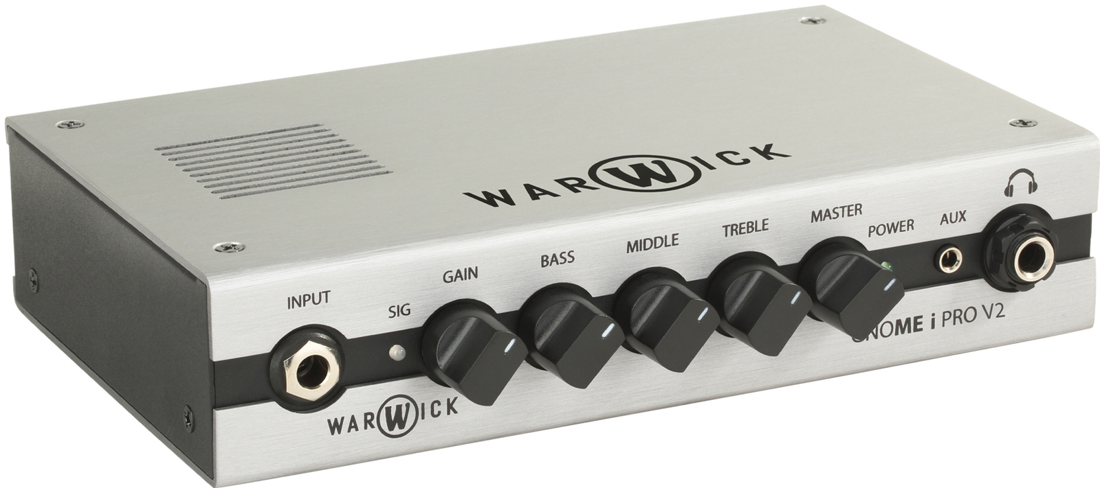 The Warwick Gnome i Pro V2 Bass Amp Head gives bassists a clear, defined sound and impressive performance - all in a super compact, lightweight design that fits easily in your pocket! The Gnome i Pro V2 heads are designed to provide beginners, demanding musicians and seasoned professionals with an affordable and reliable amplifier that impresses with an ultra-portable, lightweight design and leaves nothing to be desired with its transparent, crisp sound and quiet operation. The Warwick Gnome i Pro V2 offers a user-friendly audio interface without special driver or software requirements. Via the USB audio interface, the Gnome amplifier can be connected to a PC, MAC or a compatible mobile device to edit or record the signal using digital audio software plug-ins. With +/- 3 dB cut/boost per band, the 15-band EQ offers plenty of possibilities to shape the sound according to your own ideas, and the Warwick Gnome i Pro V2 can be easily used in live mode or in the studio via the balanced post-EQ XLR DI output with switchable ground lift. The headphone jack also offers the possibility to use the amplifier for silent practice, audio/line signals can be fed in via the front aux-in input.