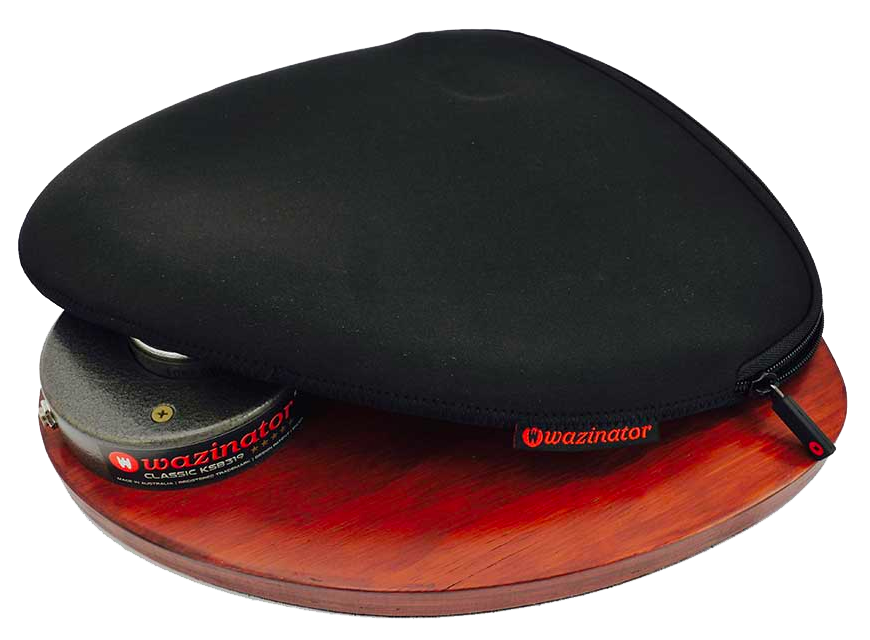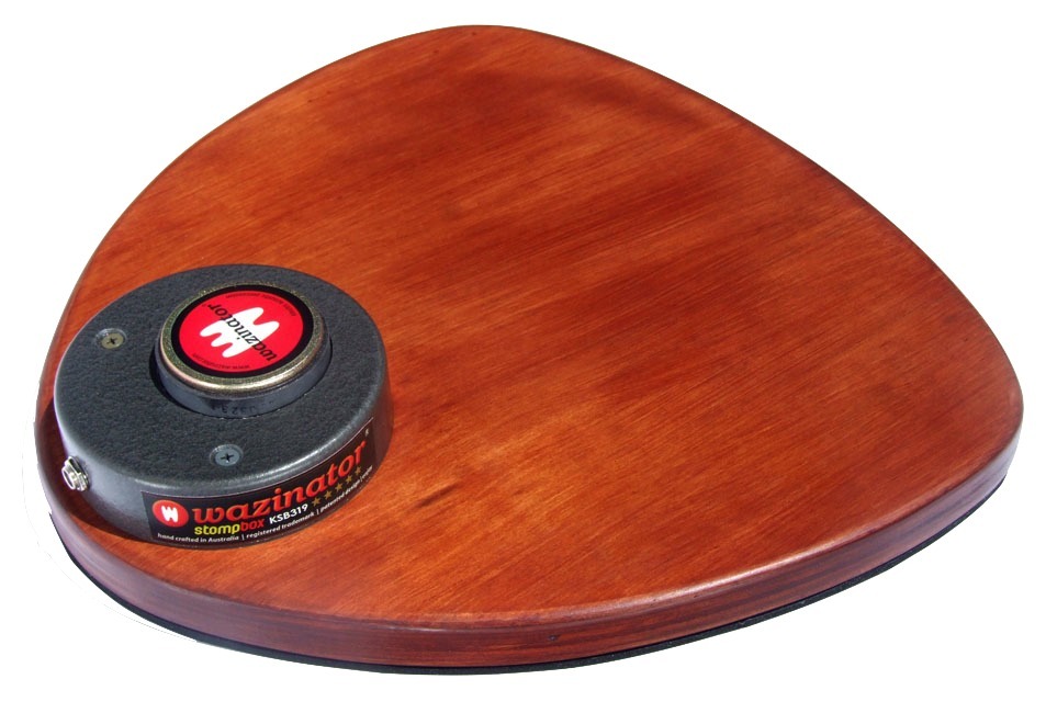 The pick up system is an original design owned by Wazinator Australia. It is a pump action unit that is akin to having your foot directly connected to the woofers in the PA system or your bass amp. The unit is also sensitive to acoustic sounds made by your foot on the timber pad.