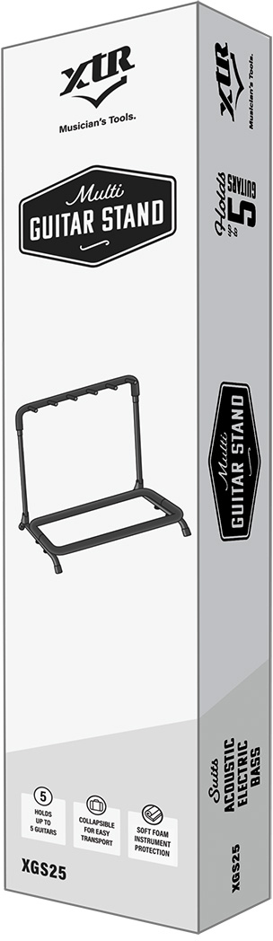 Lightweight yet sturdy, the XTR XGS25 Multi Guitar Stand securely holds five mixed guitars – acoustic, electric or bass. Crafted from lightweight tubular steel, this stand offers superior stability and features thick EVA foam rubber protection at all contact points to prevent damage and wear. The tubular steel construction offers stability, complemented by non-slip rubber feet for added security. It’s a versatile solution for musicians on the go.