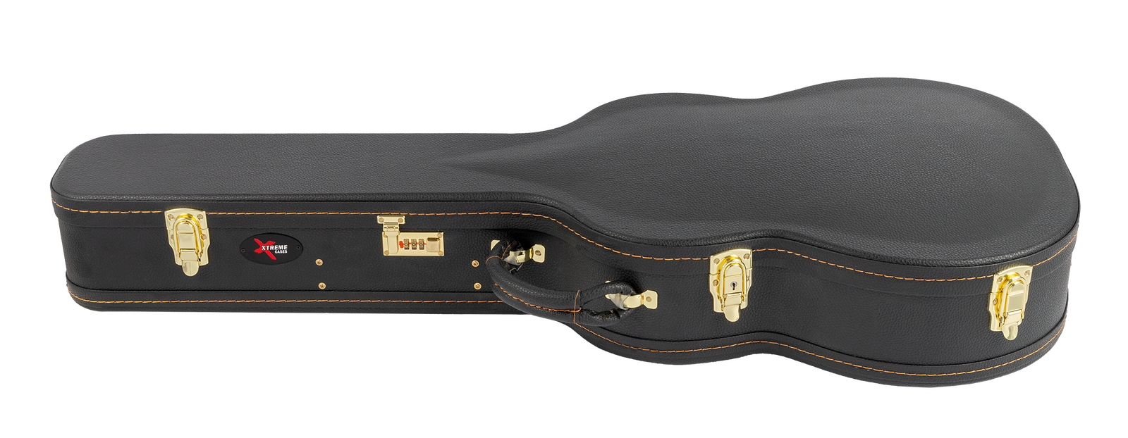 Heavy duty plywood covered in black vinyl with orange stitching.