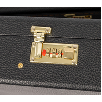 5 deluxe gold drawbolt latches and combination lock.