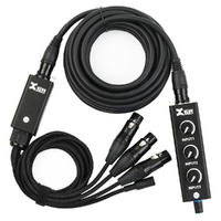 The PX-A Mixer receives audio from a mixing console via the PX-B 3-Channel Snake. The snake’s three XLR plugs (or included XLR-to-1/4” TS adapters) connect to outputs (typically aux outputs) from the console, or other audio sources such as a drum machine or audio interface. Then the included 25-foot EC25 Cat 5 Cable sends the audio to the input of your PX Mixer.