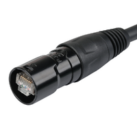 The PX-A Mixer can be powered by two AAA batteries—or, more reliably, a 9V / 2A center-negative power supply connected to the PX-B Snake (we recommend the Xvive A2 Power Supply). The ethernet cable, which can be up to 200 feet long, conveys both the audio from the console and the PoE (Power over Ethernet) from the power supply!