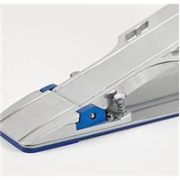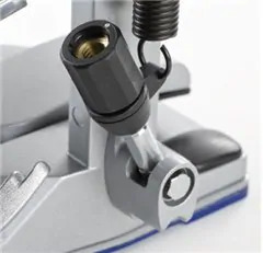 Moving the spring adjustment knob upward greatly simplifies the traditionally troublesome tension adjustment process. The knob is locked at a 90-degree angle that prevents it from coming loose on its own.