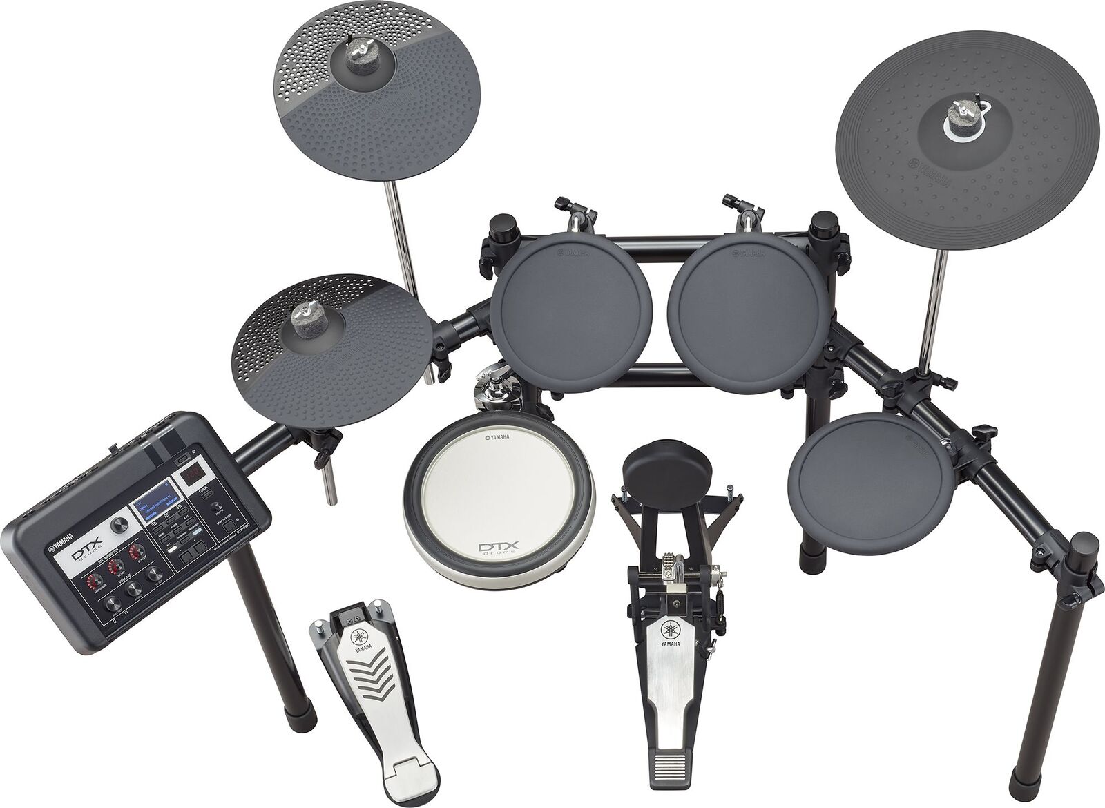 Yamaha system hardware is used for the included hi-hat stand and snare clamp