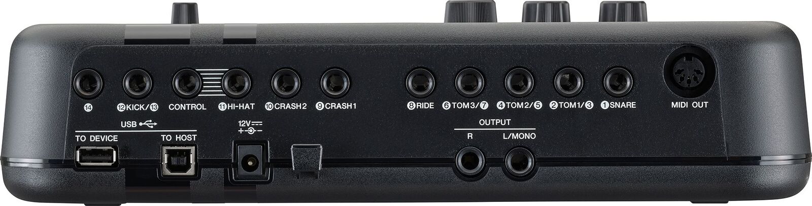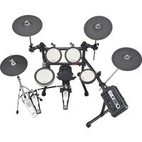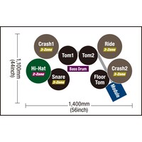 3-zone pads for the snare, crash, and ride. The cymbals can be choked and muted. Ride cymbal equipped with a hit point detection function