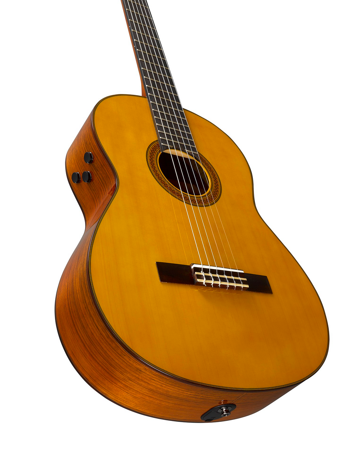 Yamaha CG-TA TransAcoustic classical nylon-string guitars transport you to new creative spaces with immersive reverb and lush chorus effects, without needing an amp or other external gear. The only nylon-string TransAcoustic model, the CG-TA has ovangkol back and sides, yielding rich, focused tone and traditional elegance. Comfortable string height and neck design offer superior playability.