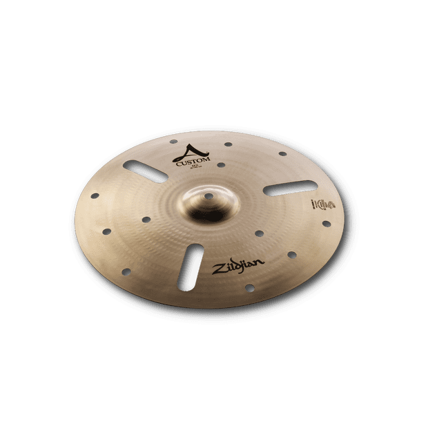 The A Custom EFX is a brighter version to the K Zildjian. This special effect cymbal features a unique laser "cut out" design that creates a dry, trashy sound, with sudden explosiveness and quick decay. Crash it for heavy, punctuating accents, or stack it with other cymbals to explore even more articulations, colors and effects. A Custom EFX cymbals come in a shimmering, brilliant finish and extra thin weight.