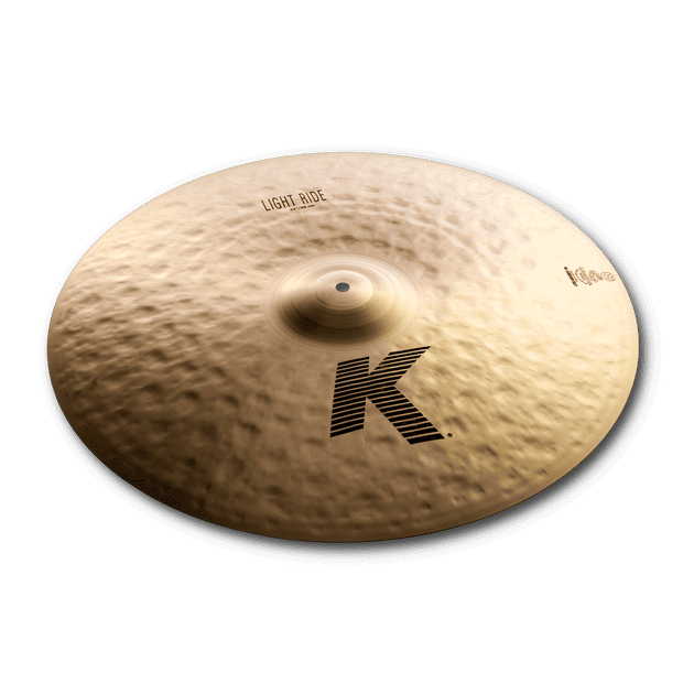 K Light Rides are excellent all-around rides equipped to perform in any genre. They are described as having a "smoky" sound but are very responsive and able to generate a vast array of articulation and colors. The K Lights feature larger and smaller K style hammer marks, and smooth K Zildjian lathing customary found in other K Zildjians. Coming in at thin to medium-thin despite their name, they are crashable but also provide full, clear stick definition. The 24" model has a slightly smaller bell to retain a solid stick sound.