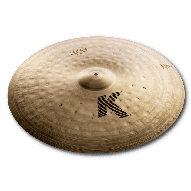 K Light Rides are excellent all-around rides equipped to perform in any genre. They are described as having a "smoky" sound but are very responsive and able to generate a vast array of articulation and colors. The K Lights feature larger and smaller K style hammer marks, and smooth K Zildjian lathing customary found in other K Zildjians. Coming in at thin to medium-thin despite their name, they are crashable but also provide full, clear stick definition. The 24" model has a slightly smaller bell to retain a solid stick sound.
