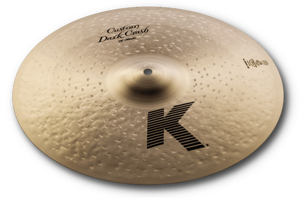 The dark and full-bodied K Custom Dark Crash utilizes a special over-hammering technique that allows for a quick and bright attack with an extra fast decay. This allows for a heavier Crash to have a similar response to a thinner and lighter cymbal, but with a lot more volume potential.