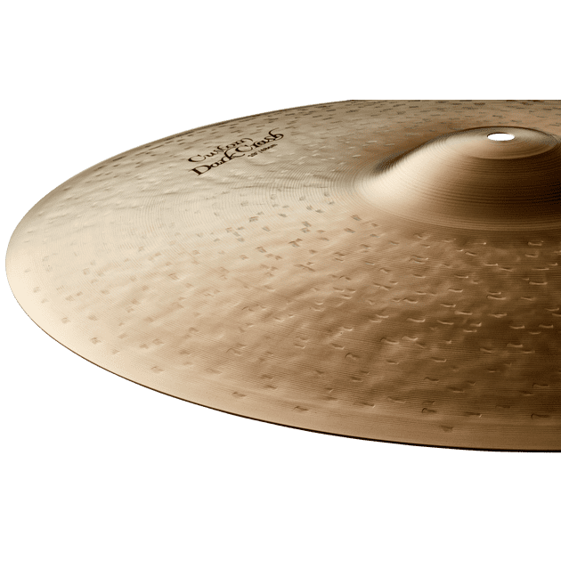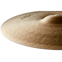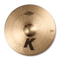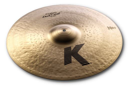 The dark and full-bodied K Custom Dark Crash utilizes a special over-hammering technique that allows for a quick and bright attack with an extra fast decay. This allows for a heavier Crash to have a similar response to a thinner and lighter cymbal, but with a lot more volume potential.