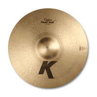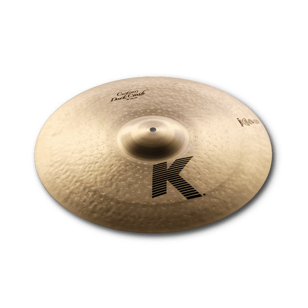 The dark and full-bodied K Custom Dark Crash utilizes a special over-hammering technique that allows for a quick and bright attack with an extra fast decay. This allows for a heavier Crash to have a similar response to a thinner and lighter cymbal, but with a lot more volume potential.